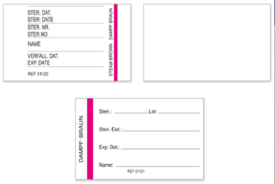 Etichette monouso adattabili a varie marche di containers per sterilizzazione (Aesculap®, KLS Martin, Wagner, SAMO, CBM, ecc.), ideate per l’inserimento dei dati necessari per la tracciabilità.